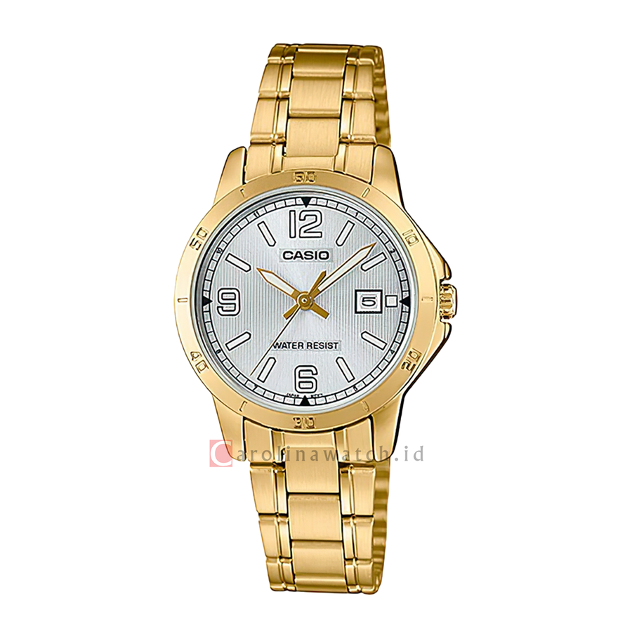 1x Jam Tangan Casio General LTP-V004G-7B2 White Dial Gold Stainless Steel Band