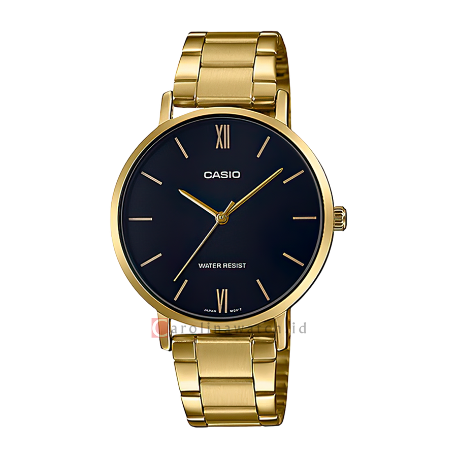 1x Jam Tangan Casio General LTP-VT01G-1B Women Black Dial Gold Stainless Steel Band