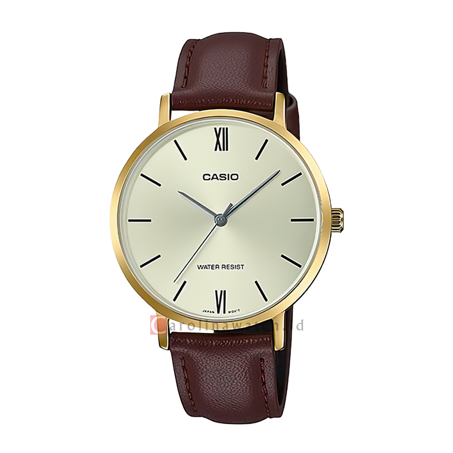 Casio General LTP-VT01GL-9B Women Gold Dial Brown Leather Band
