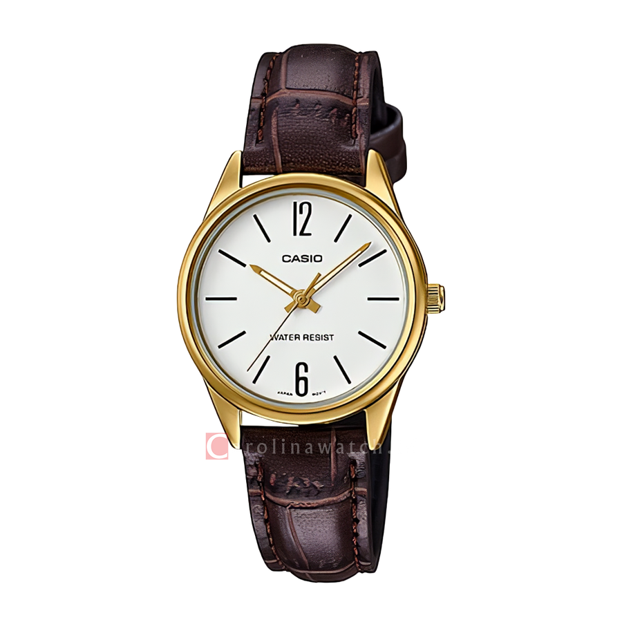 Jam Tangan Casio Standard LTP-V005GL-7B Women White Dial Brown Leather Band