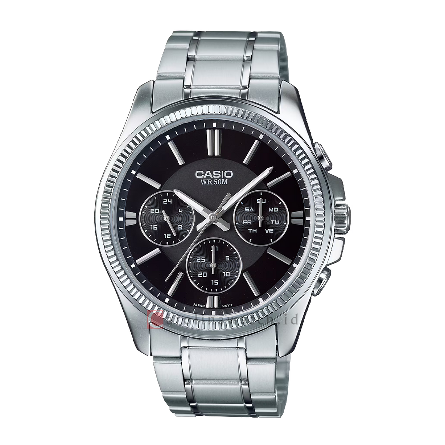 1x Jam Tangan Casio Chronograph MTP-1375D-1A Men Black Dial Stainless Steel Band