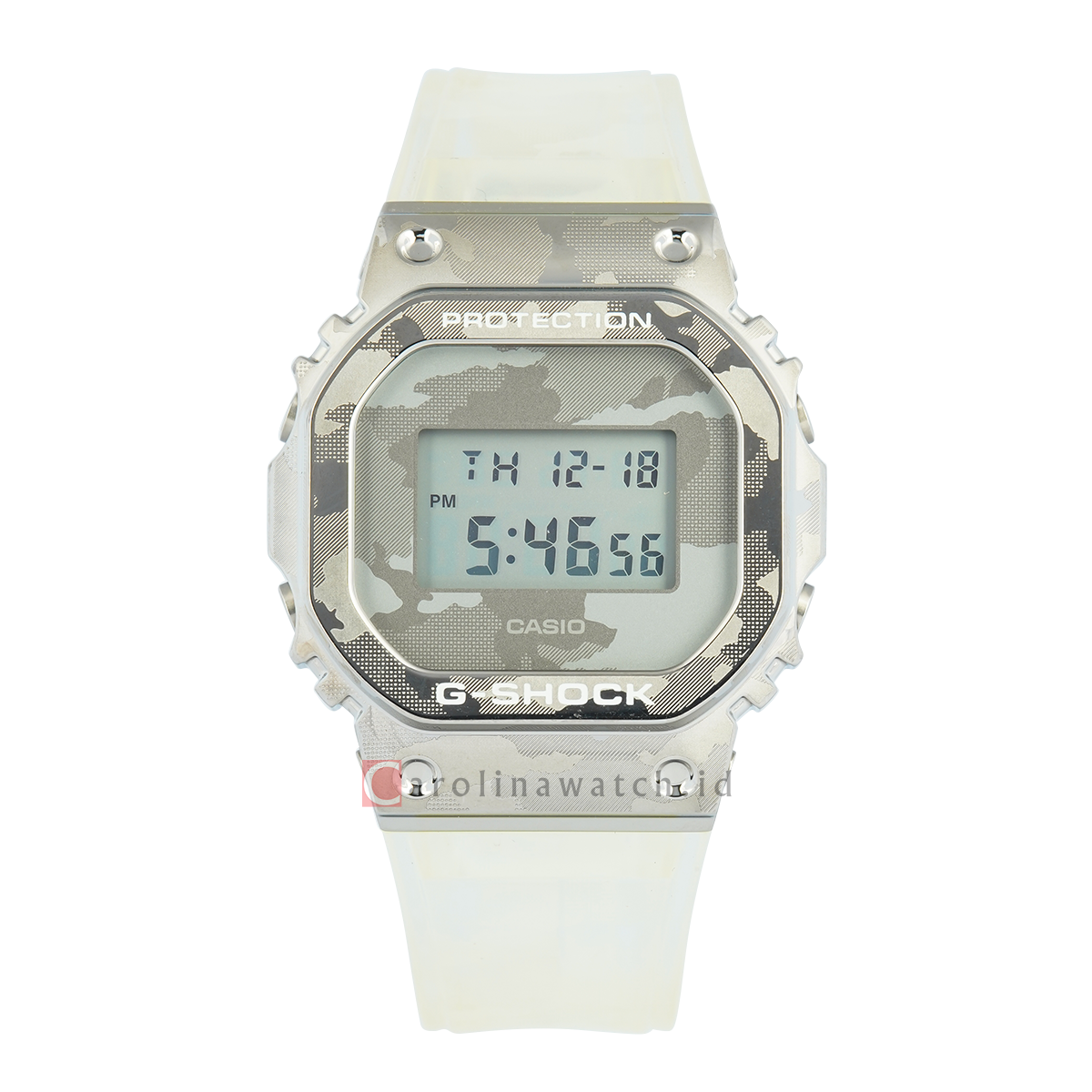 Casio G-Shock GM-5600SCM-1D Men Special Colour Models Camouflage Series Digital Dial Transparent White Resin Band