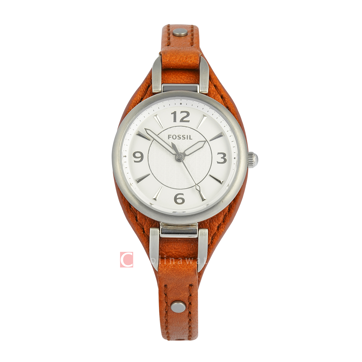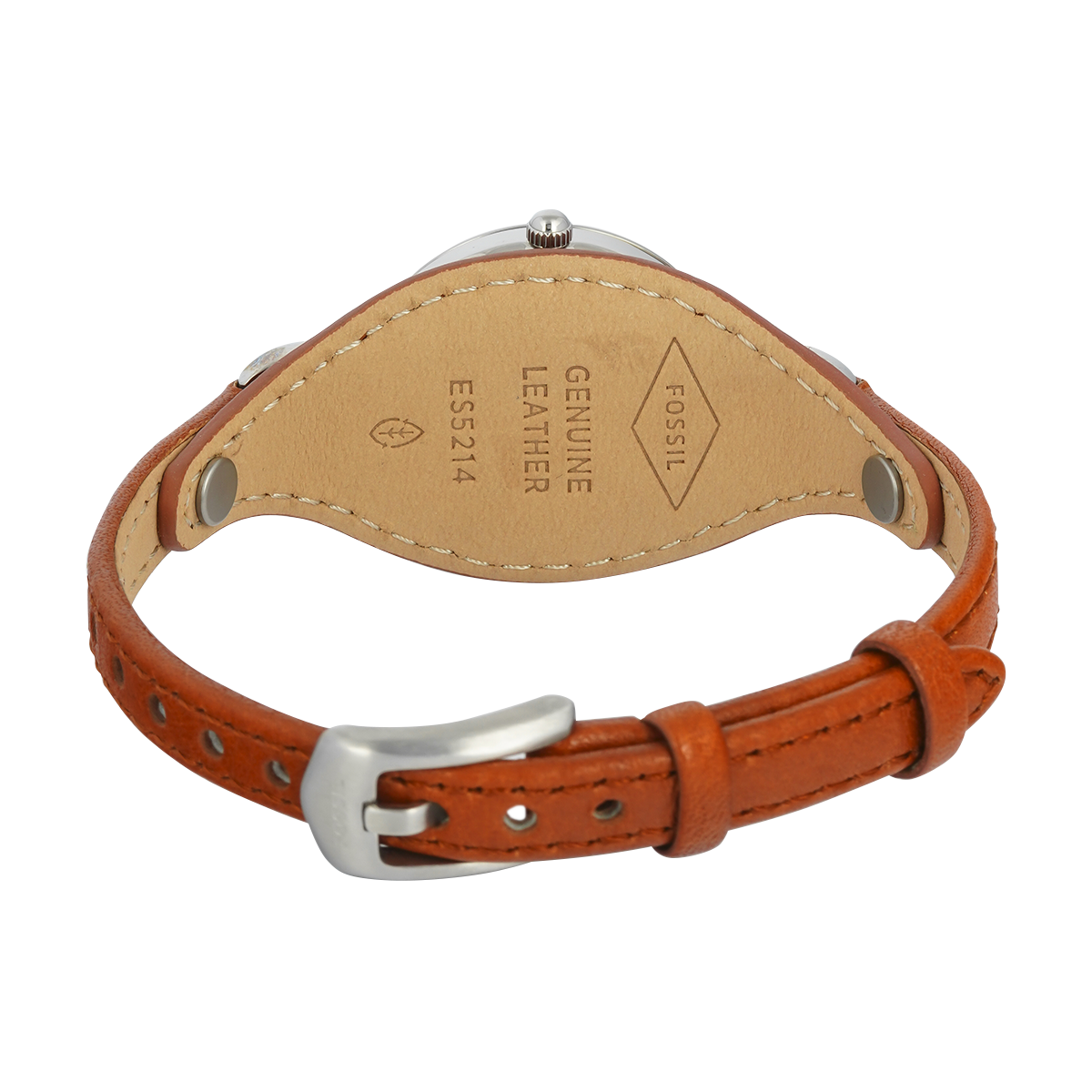 Fossil Carlie ES5214 Women Silver Dial Brown Leather Strap
