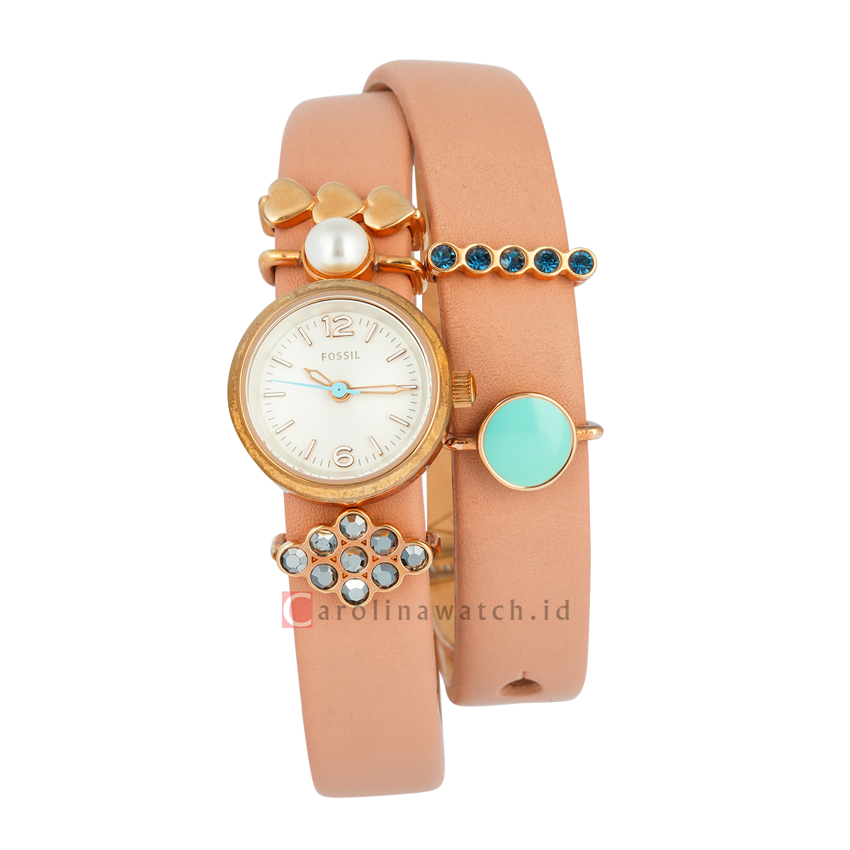 1x Jam Tangan Fossil Georgia ES4002SET Double Wrap Women White Dial Brown Leather Strap,