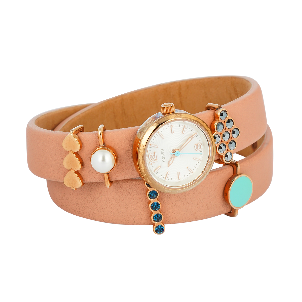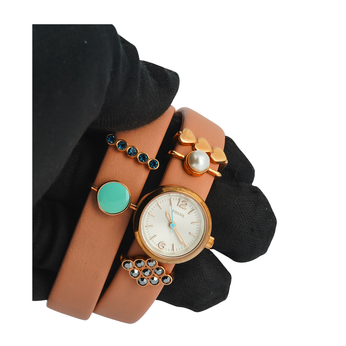 Fossil Georgia ES4002SET Double Wrap Women White Dial Brown Leather Strap