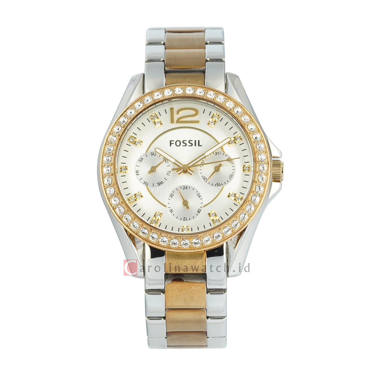 Jam Tangan Fossil Riley ES3204 Multifunction Women Silver Dial Dual Tone Stainless Steel Strap