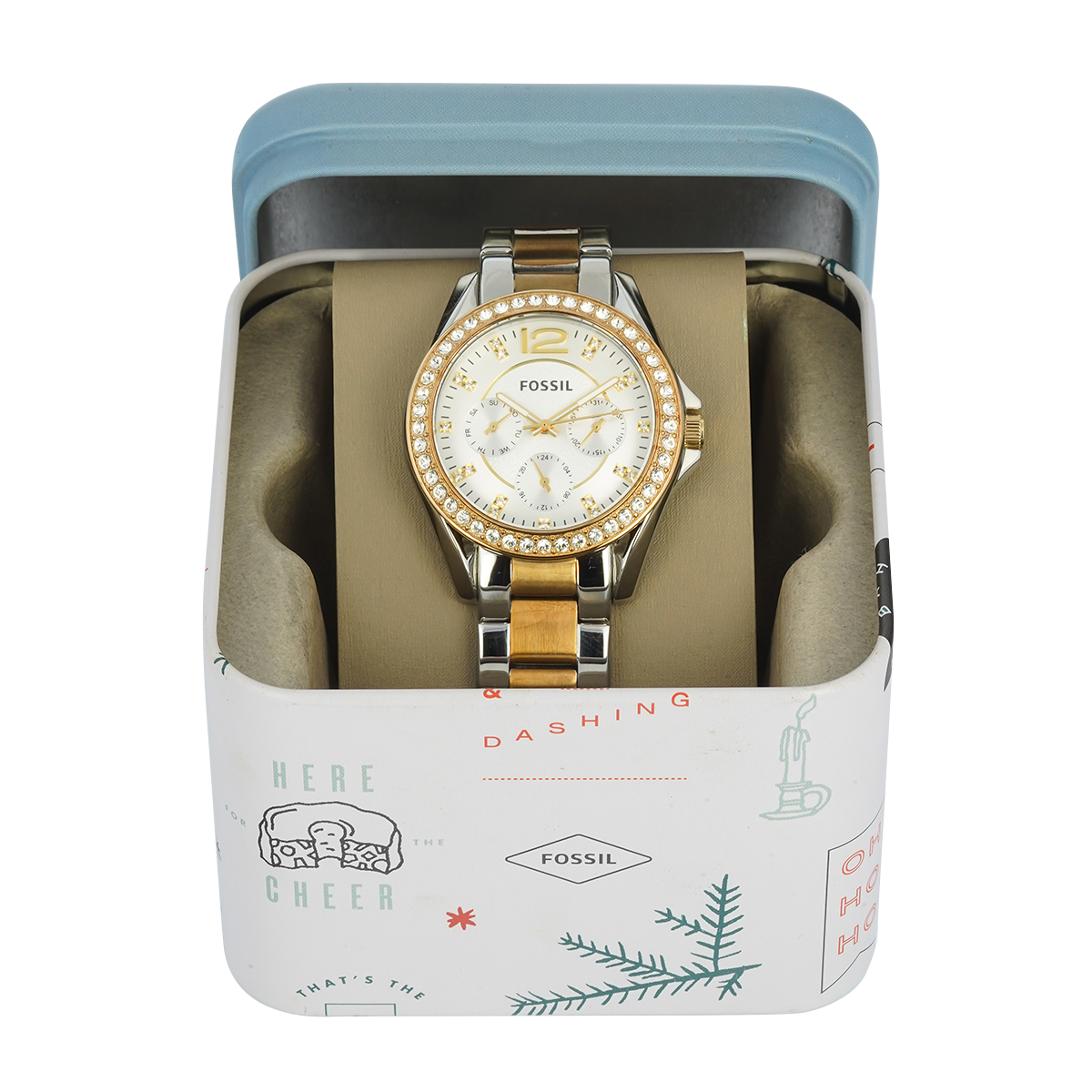 Fossil Riley ES3204 Multifunction Women Silver Dial Dual Tone Stainless Steel Strap