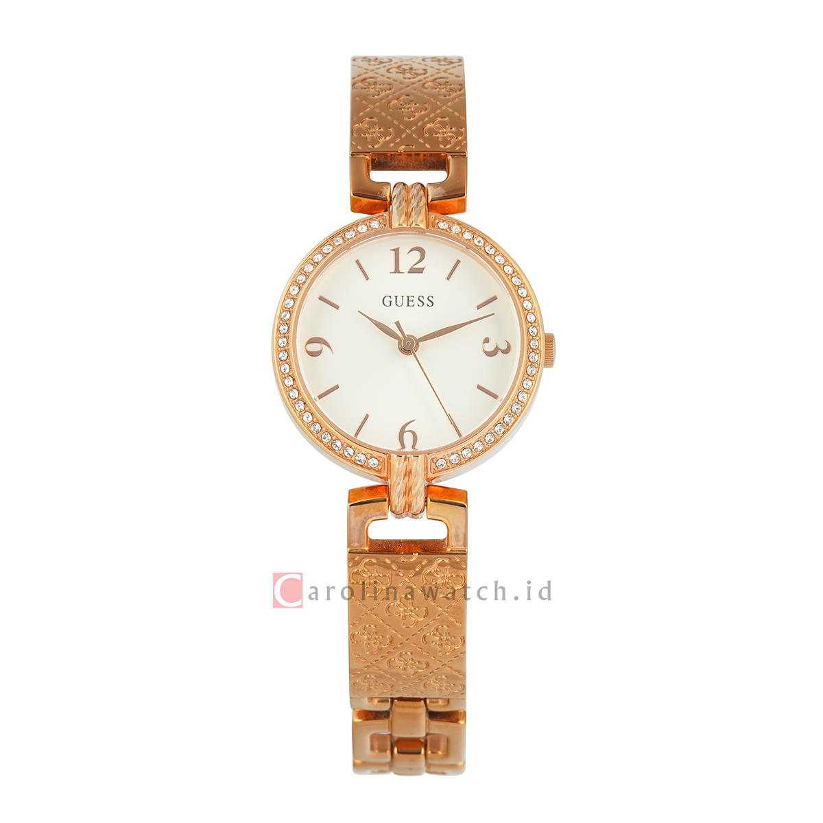 1x Jam Tangan GUESS W0112L3 Women Silver Dial Rose Gold Stainless Steel Strap
