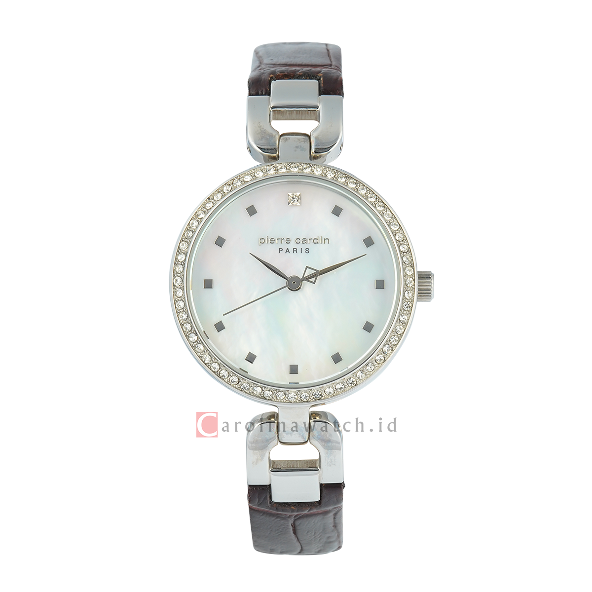 1x Jam Tangan Pierre Cardin PC108172F01 Women White MOP Dial Black Leather Strap