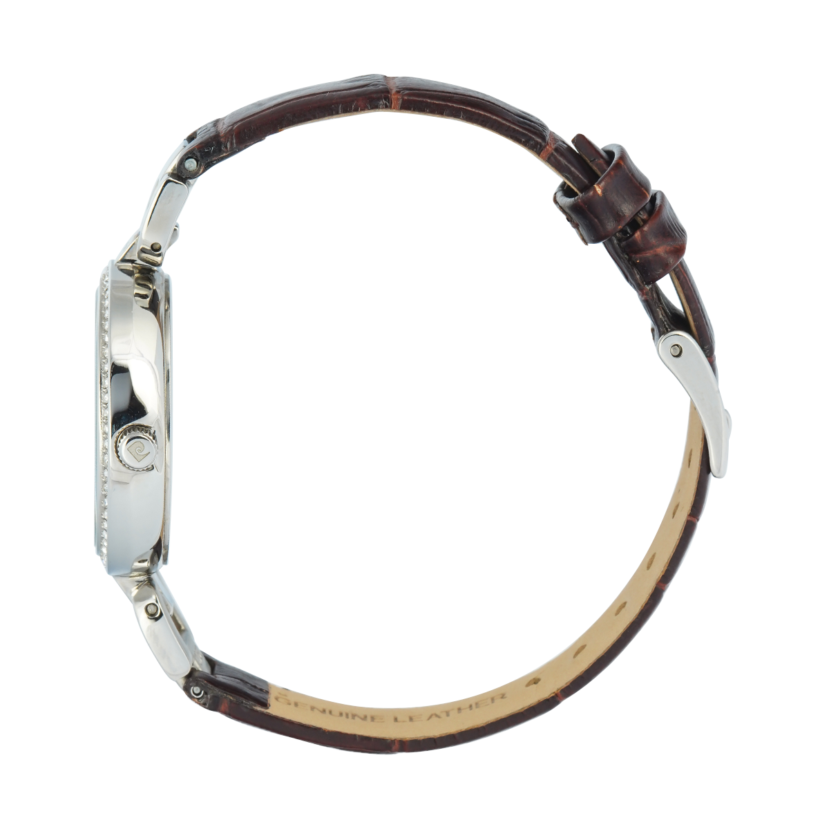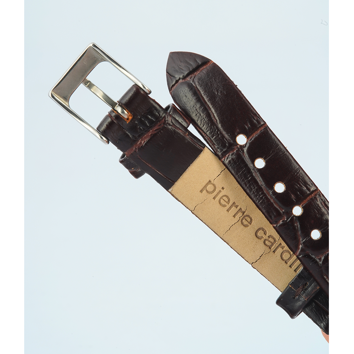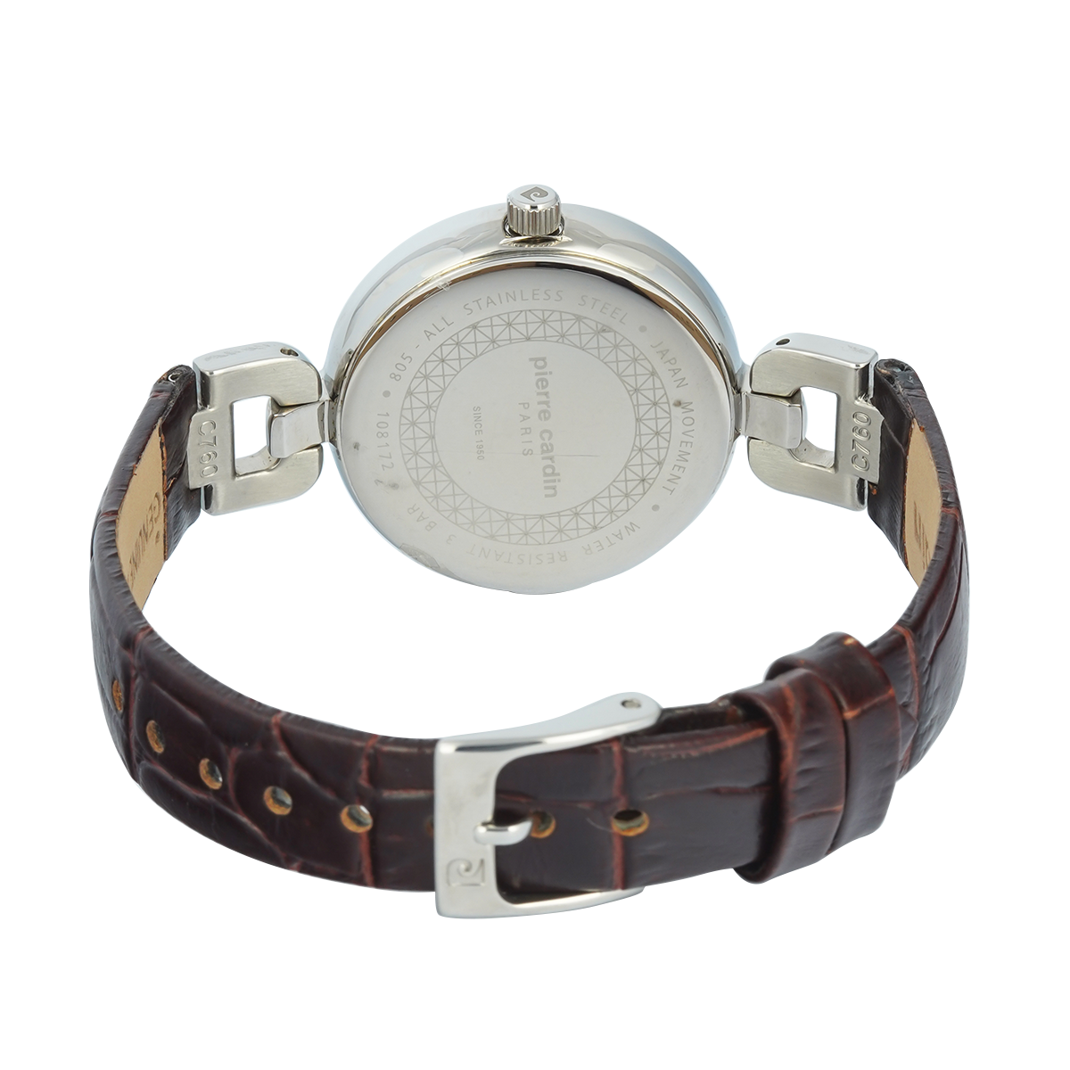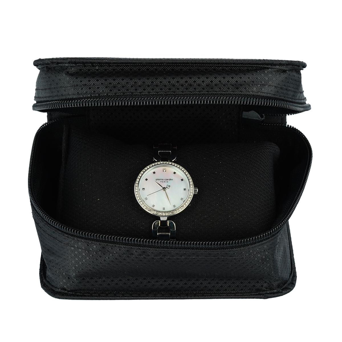Pierre Cardin PC108172F01 Women White MOP Dial Black Leather Strap