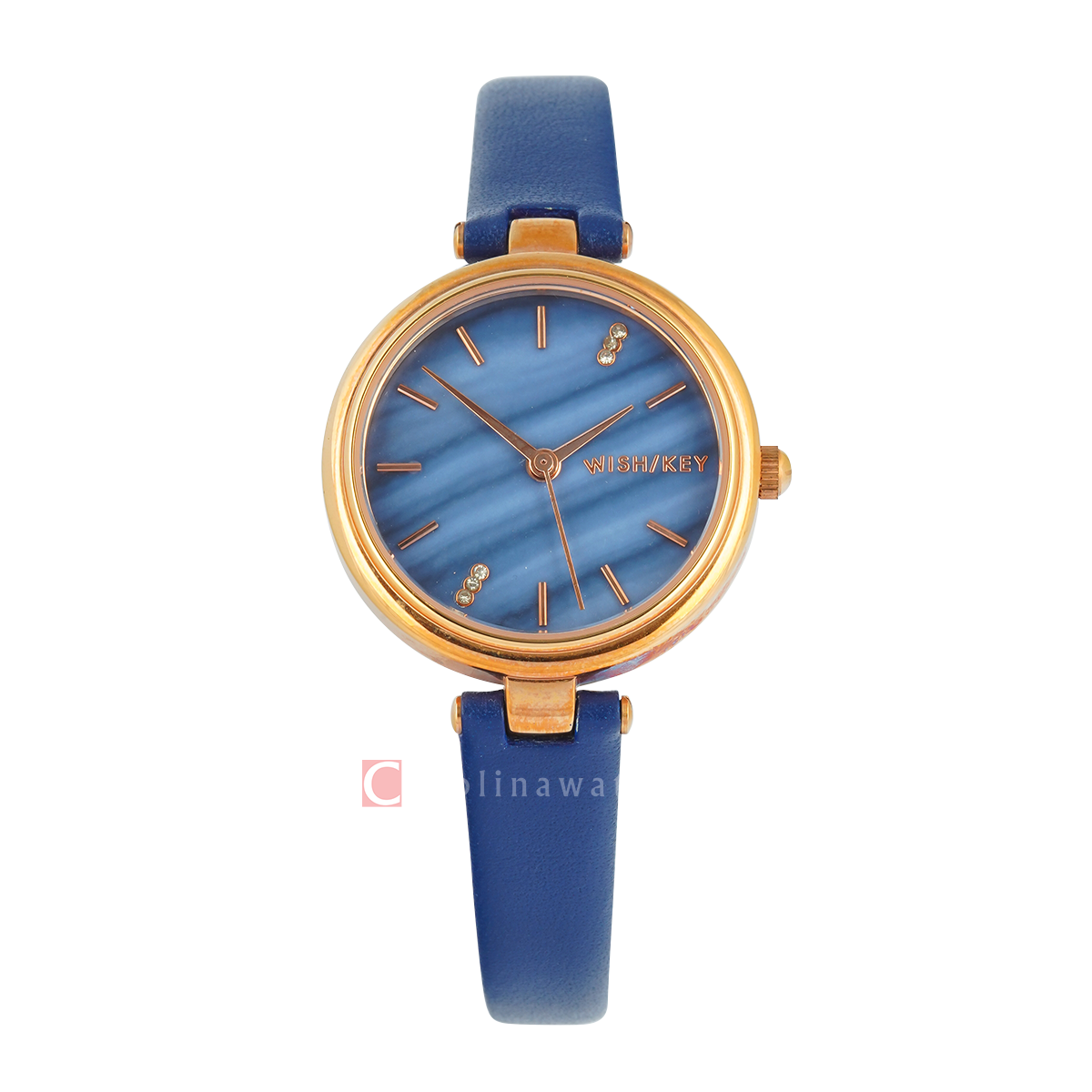 1x Jam Tangan WISH/KEY Abigail WK5001RG/04 Women Analog Dial Blue Leather Strap