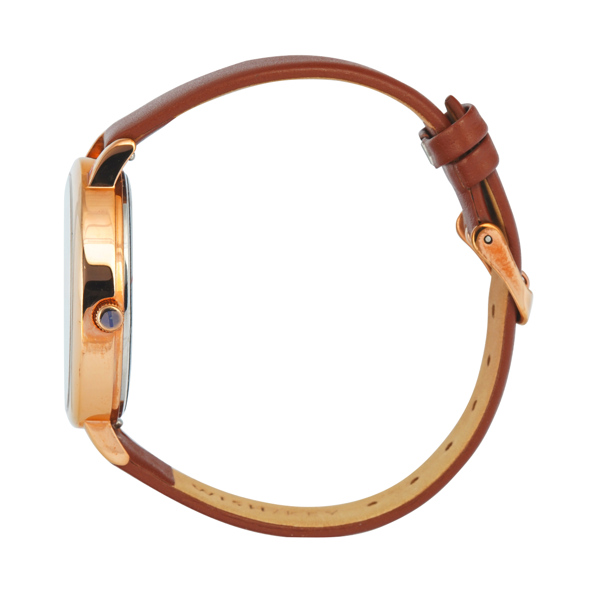 1x Jam Tangan WISH/KEY WK4024RG/06SET Women Analog Dial Brown Leather Strap