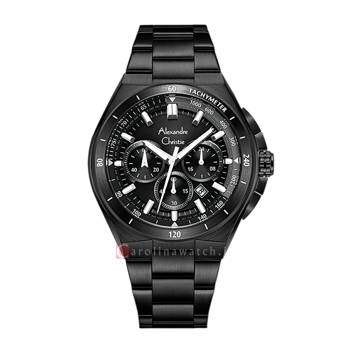 1x Jam Tangan Alexandre Christie AC 6691 MCFIPBA Men Black Dial Black Stainless Steel Strap,