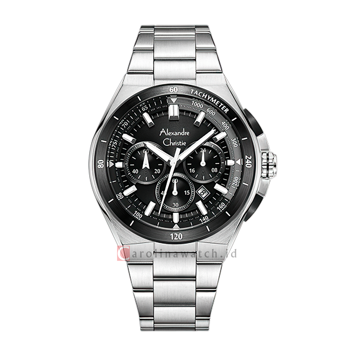 1x Jam Tangan Alexandre Christie AC 6691 MCFTBBA Men Black Dial Stainless Steel Strap
