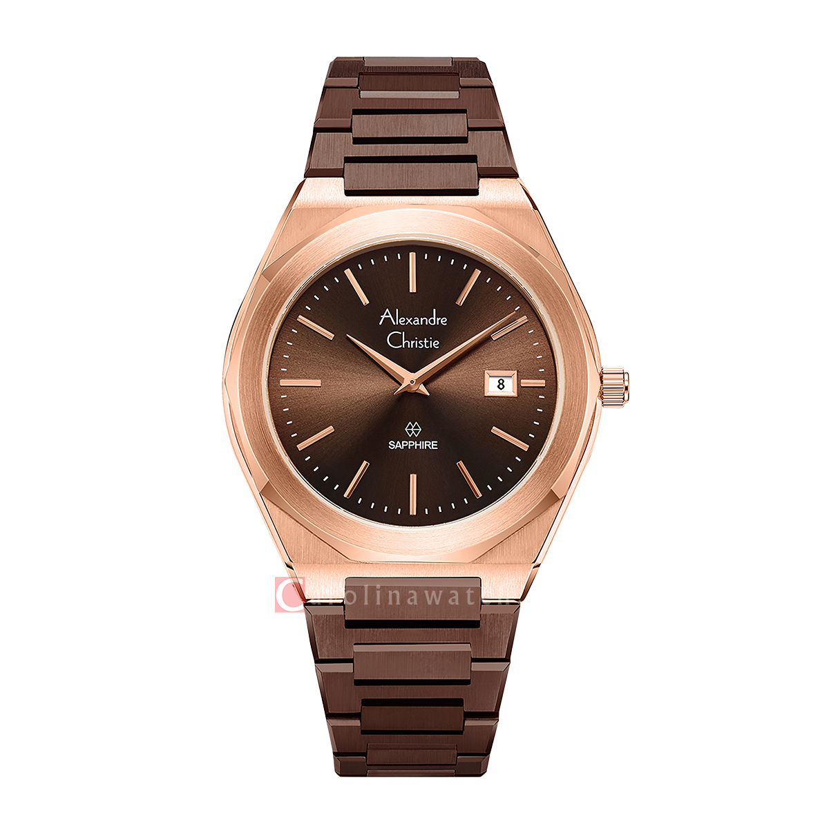 1x Jam Tangan Alexandre Christie AC 8710 MDBROBOSG Sapphire Men Brown Dial Brown Stainless Steel Strap