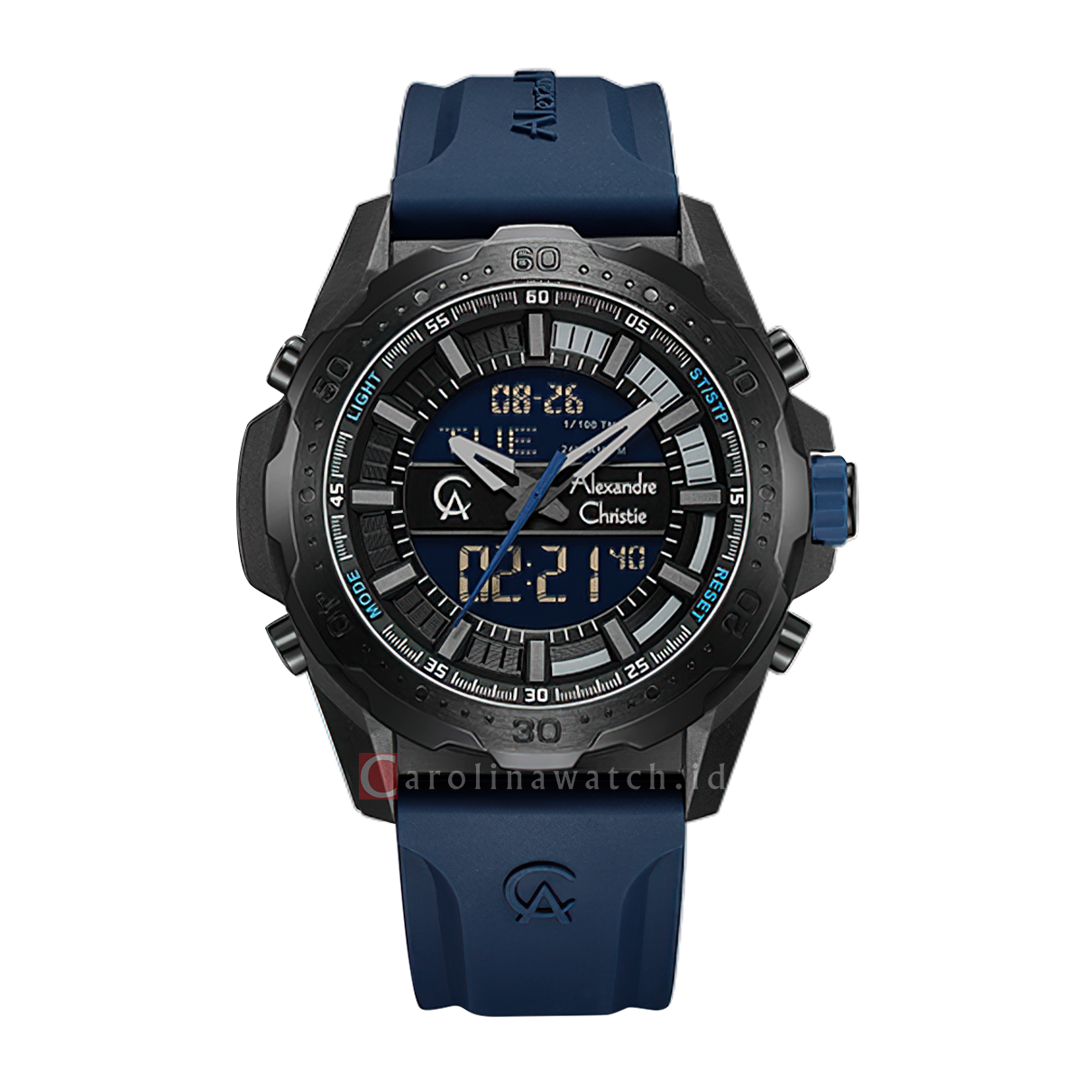 1x Jam Tangan Alexandre Christie AC 9370 MHRIPBABU Men Digital Analog Dial Blue Rubber Strap,