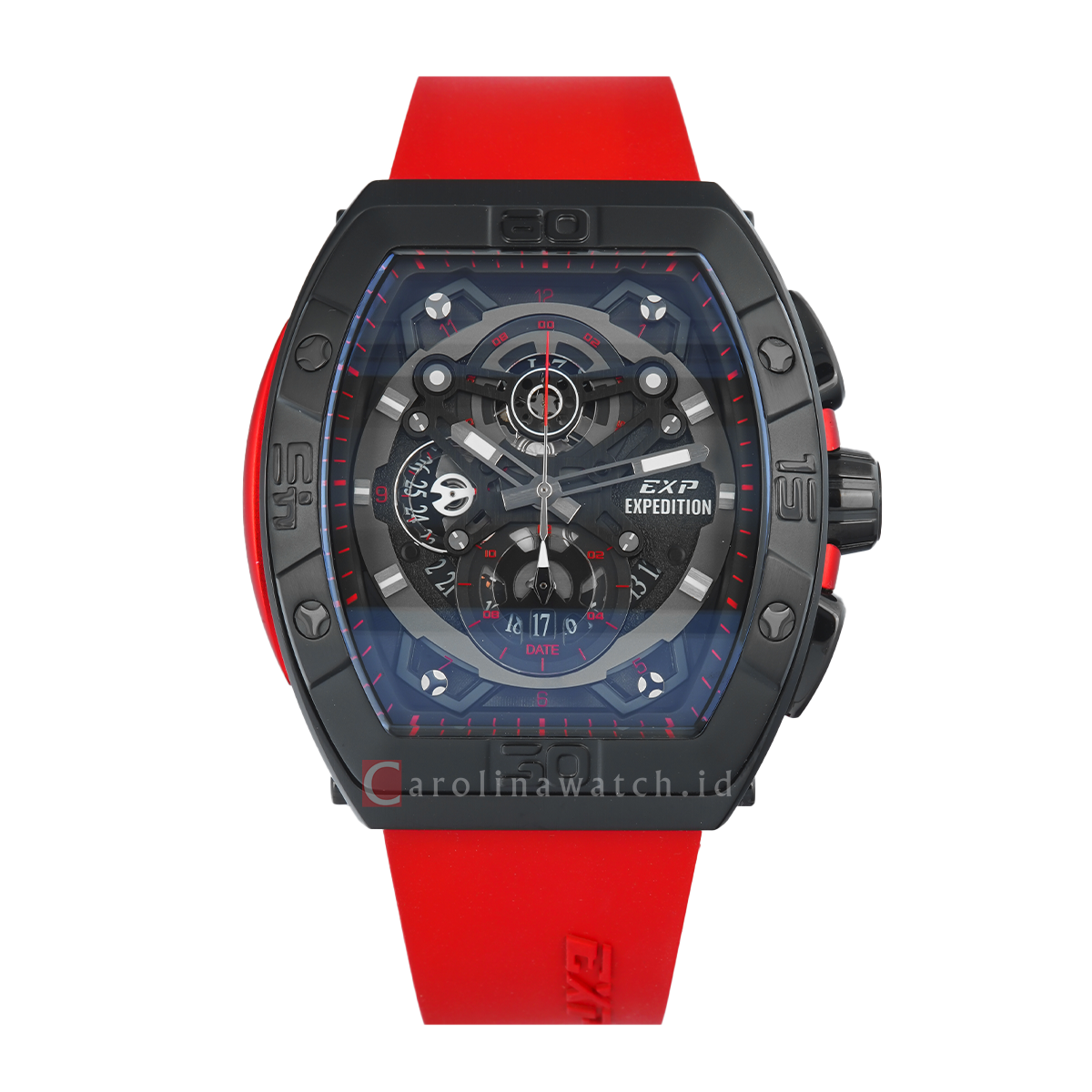 1x Jam Tangan Expedition EXP EX 6800 MCRIPREBA Men Black Dial Red Rubber Strap,