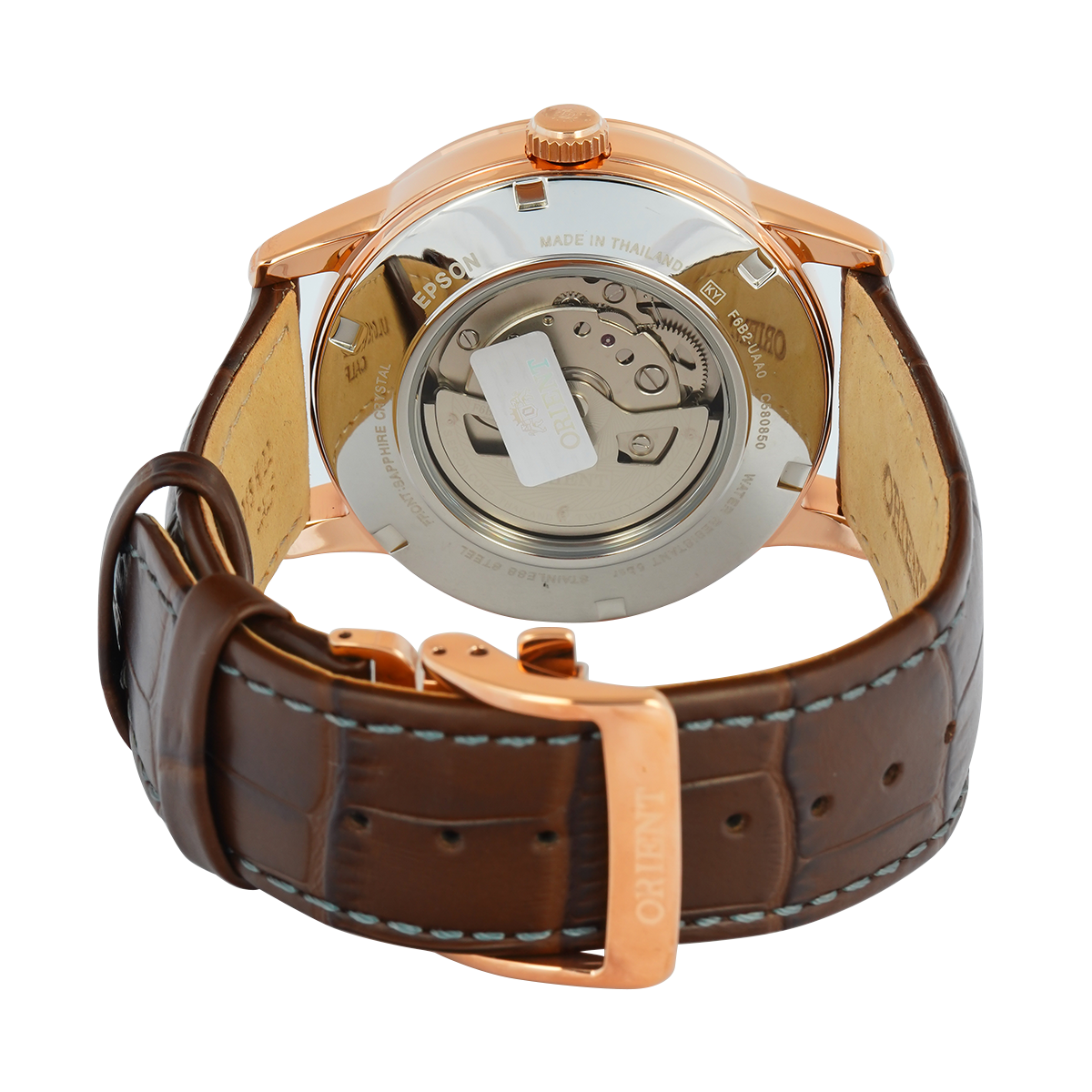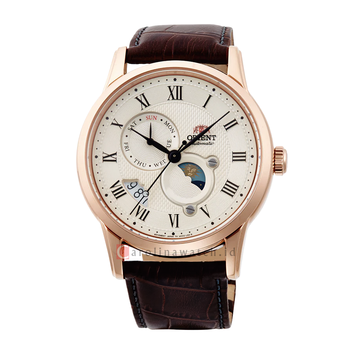 Jam Tangan Orient Classic RA-AK0007S Sophisticated Sun & Moon Textured Ivory Dial Brown Leather Strap