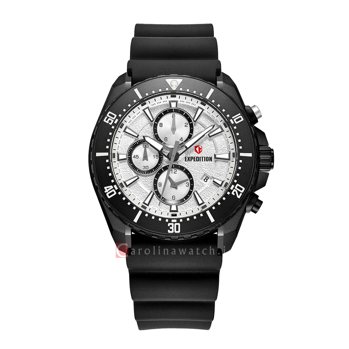 1x Jam Tangan S Expedition E 6869 MCRIPSLBA Men White Dial Black Rubber Strap