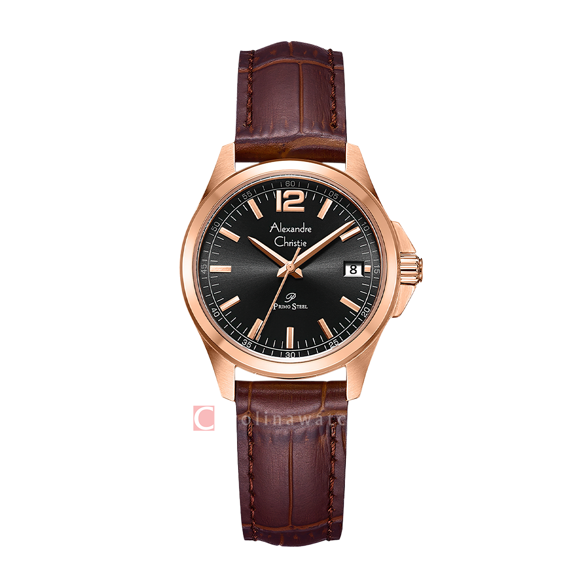 1x Jam Tangan Alexandre Christie Primo Steel AC 1031 LDLRGBABO Women Black Dial Brown Leather Strap,