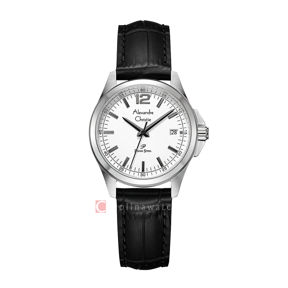 1x Jam Tangan Alexandre Christie Primo Steel AC 1031 LDLSSSL Women White Dial Black Leather Strap,