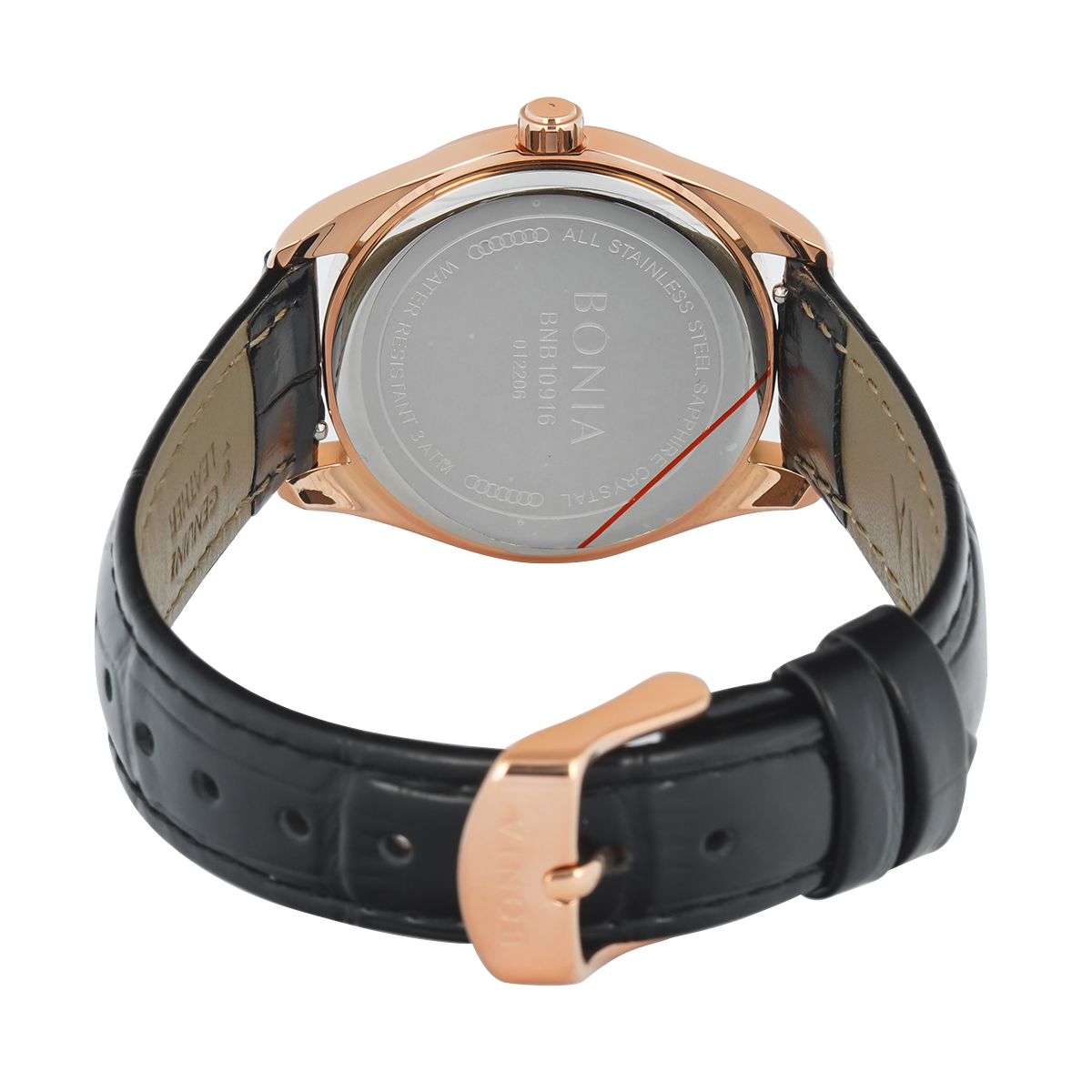 1x Jam Tangan BONIA B10916-2512 Women Silver Dial Black Leather Band