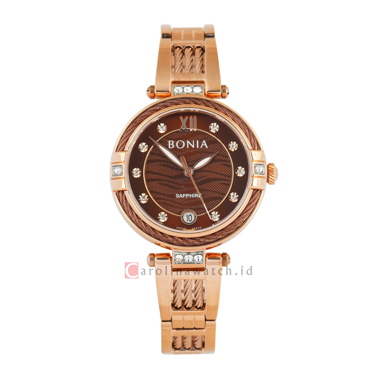 1x Jam Tangan BONIA Elegance B10849-2547S Women Brown Dial Gold Stainless Steel Band