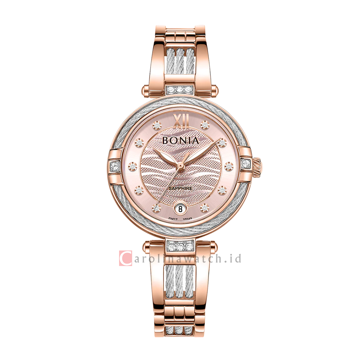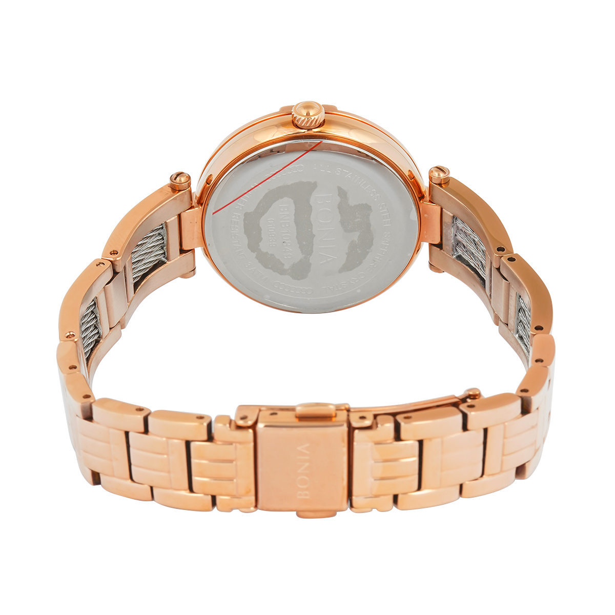 1x Jam Tangan BONIA Elegance B10849-2577S Women Rose Gold Dial Dual Tone Stainless Steel Band