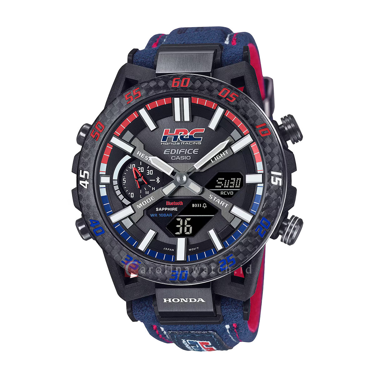 1x Jam Tangan Casio EDIFICE SOSPENSIONE ECB-2000HR-1A Honda Racing Collaboration Model Men Black Digital Analog Dial Blue Leather Band