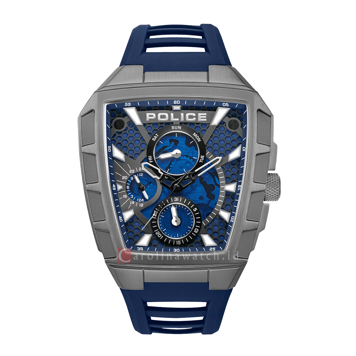 Jam Tangan Police Tough Gear PEWGQ0056806 Men Blue Dial Blue Rubber Strap
