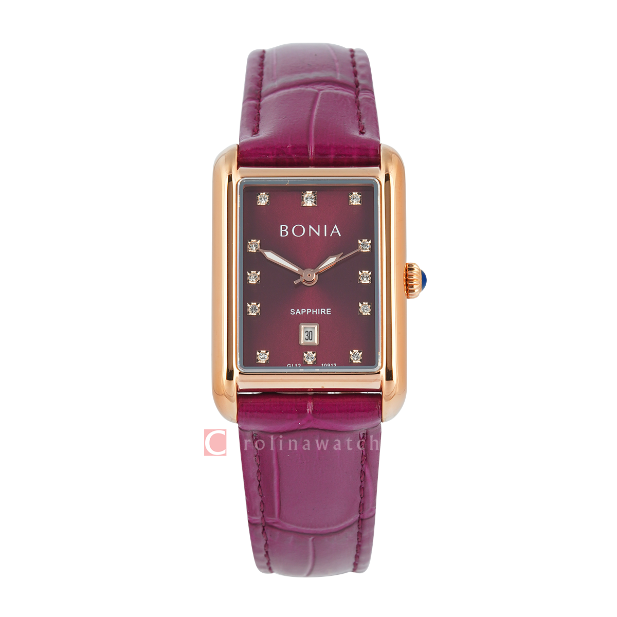 1x Jam Tangan BONIA B10912-2567 Women Red Dial Red Leather Strap