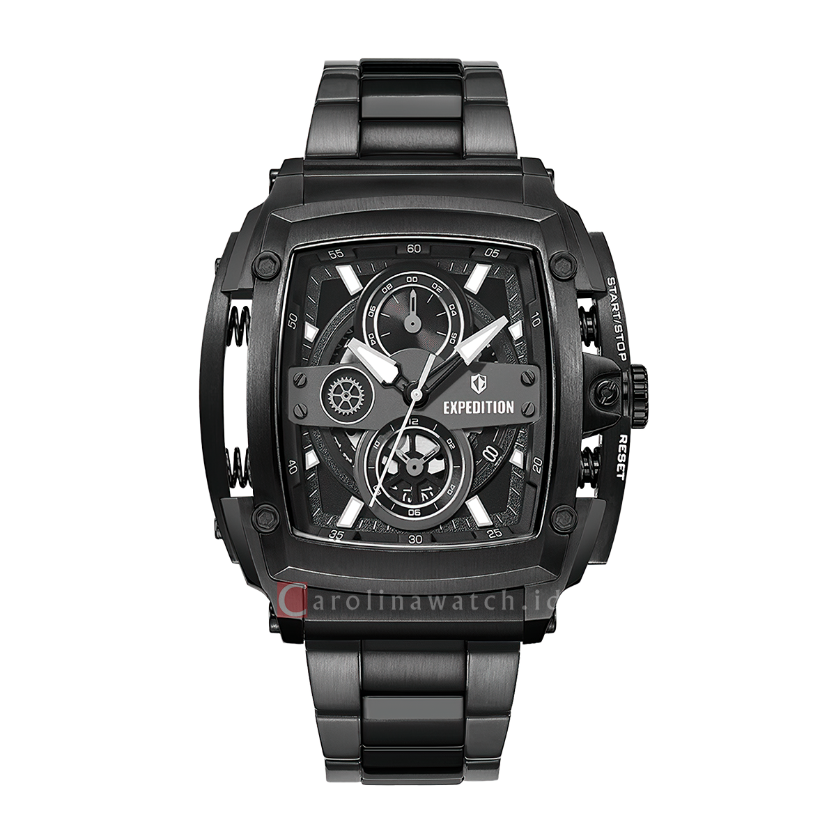 1x Jam Tangan S Expedition Chronograph E 3008 GCBIGBA Men Black Dial Black Stainless Steel Strap
