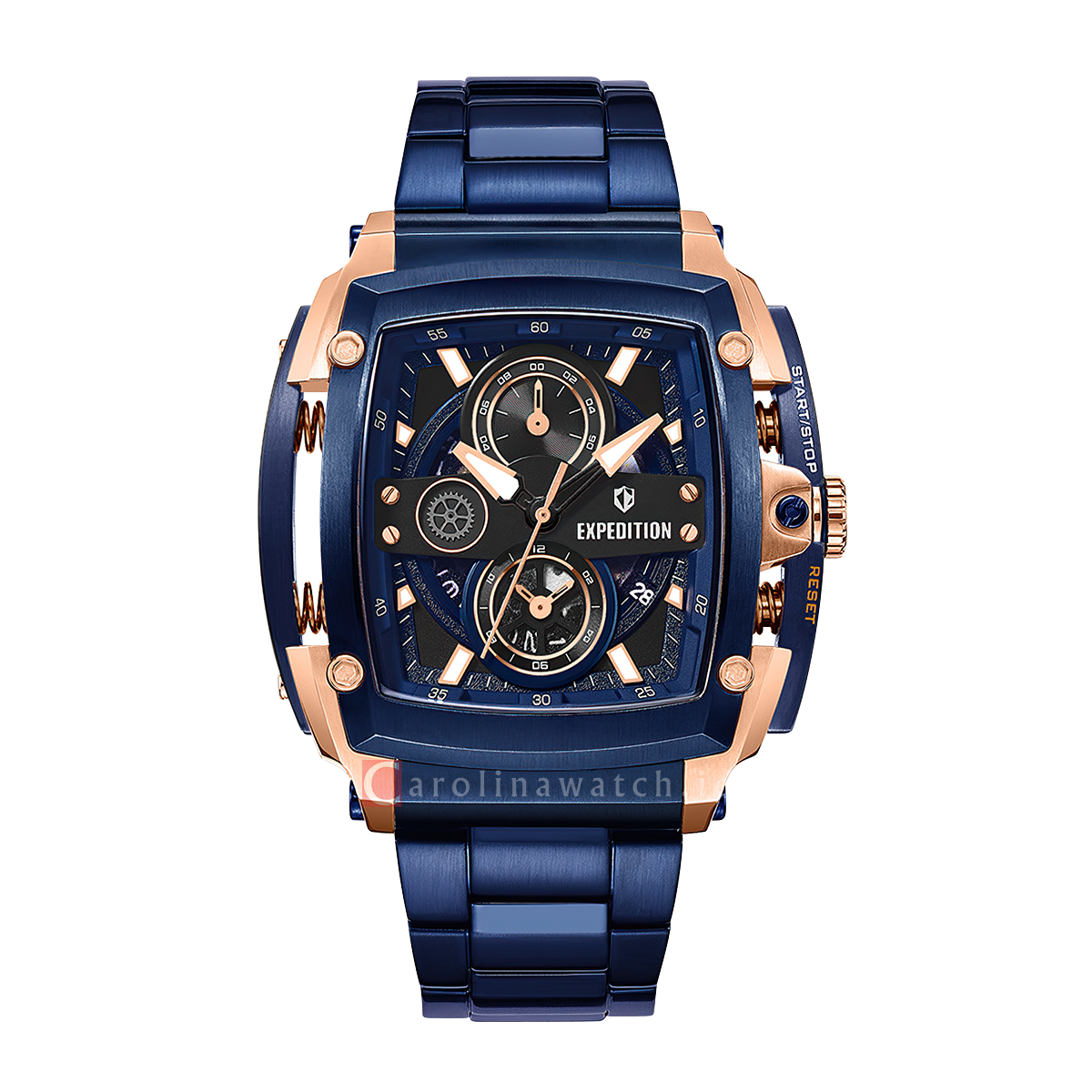 1x Jam Tangan S Expedition Chronograph E 3008 GCBURBU Men Blue Dial Blue Stainless Steel Strap