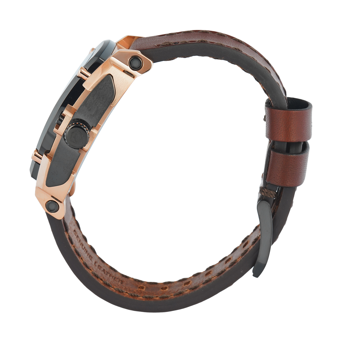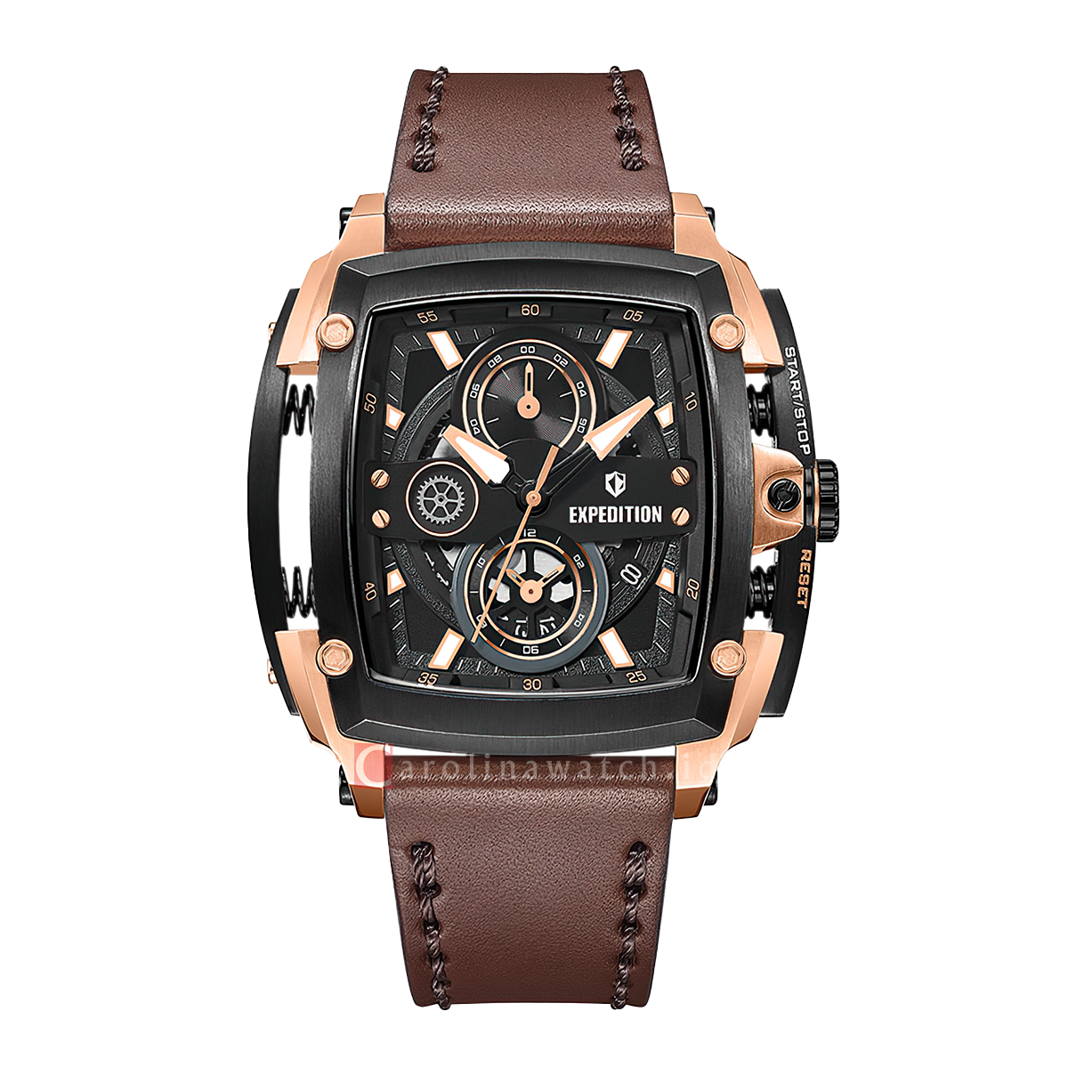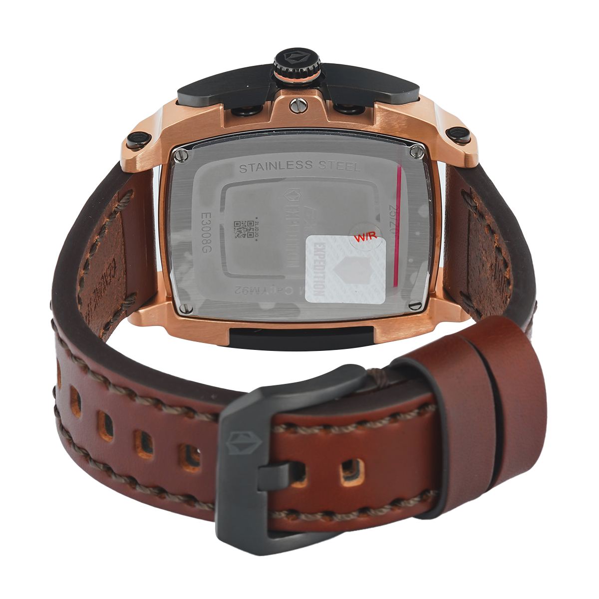 Jam Tangan S Expedition Chronograph E 3008 GCLGRBA Men Black Dial Brown Leather Strap