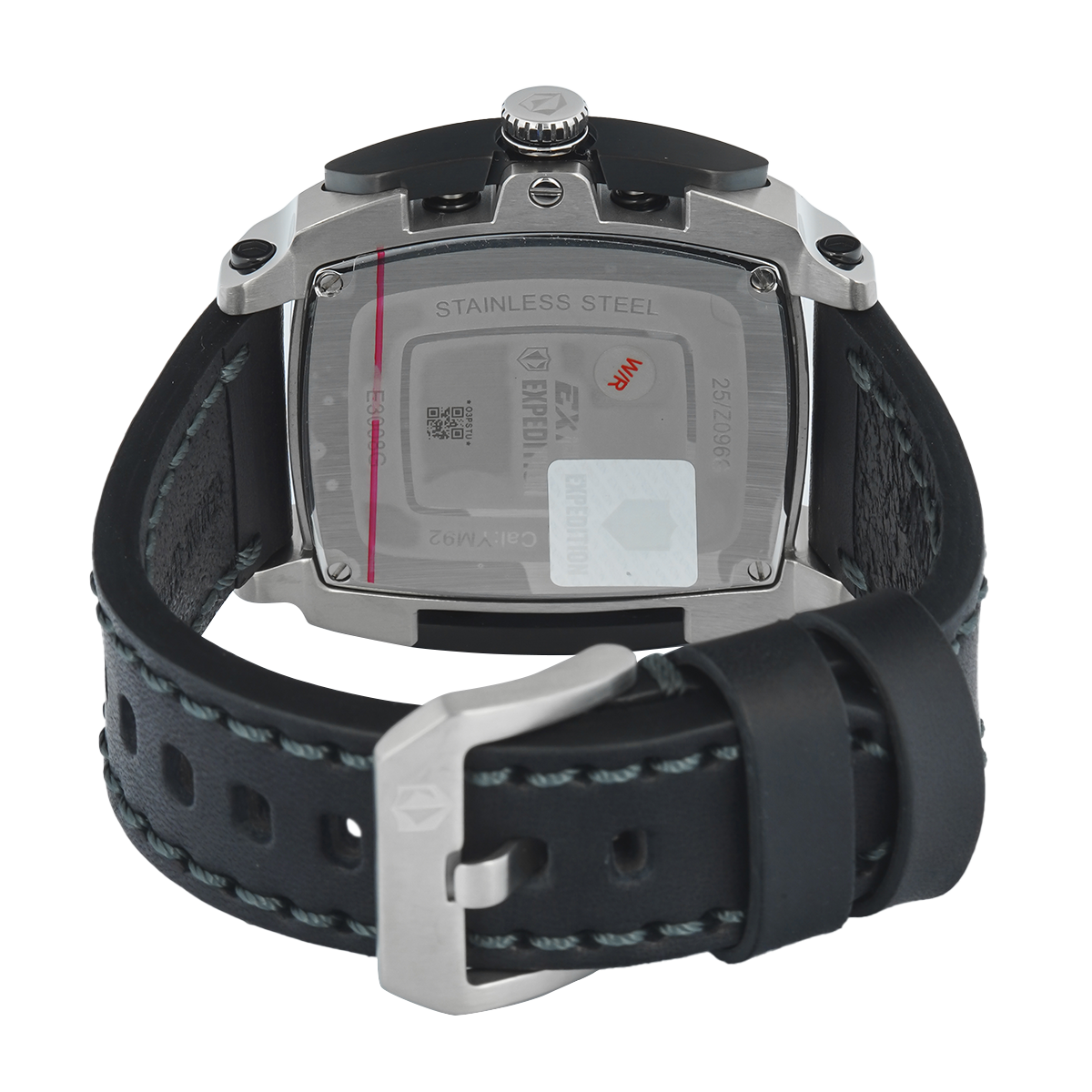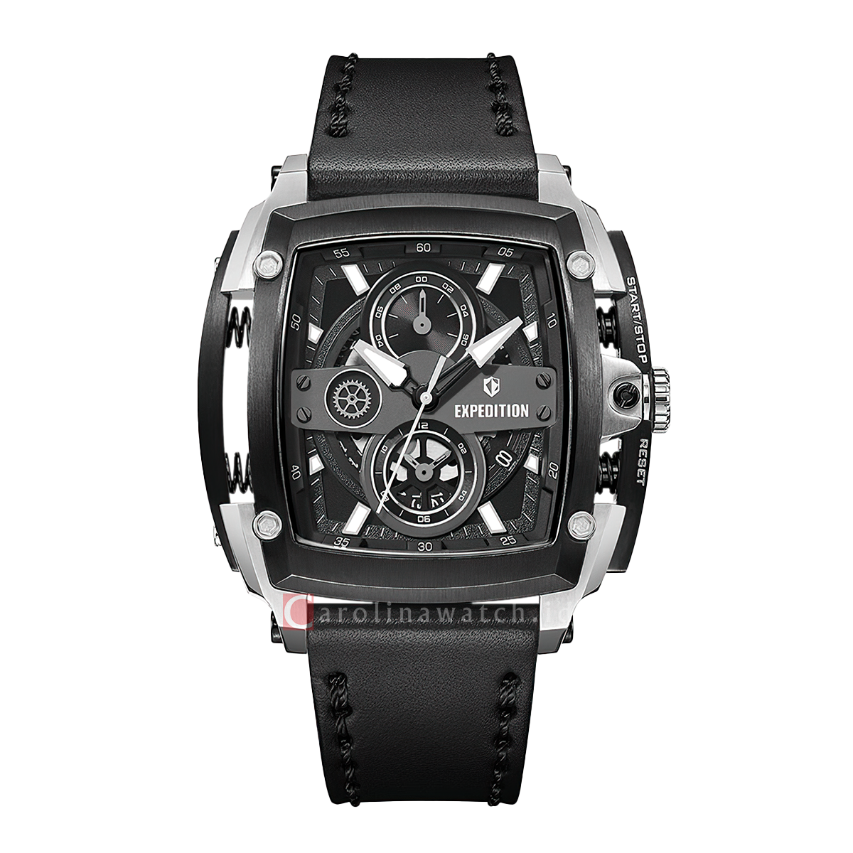 Jam Tangan S Expedition Chronograph E 3008 GCLTEBA Men Black Dial Black Leather Strap