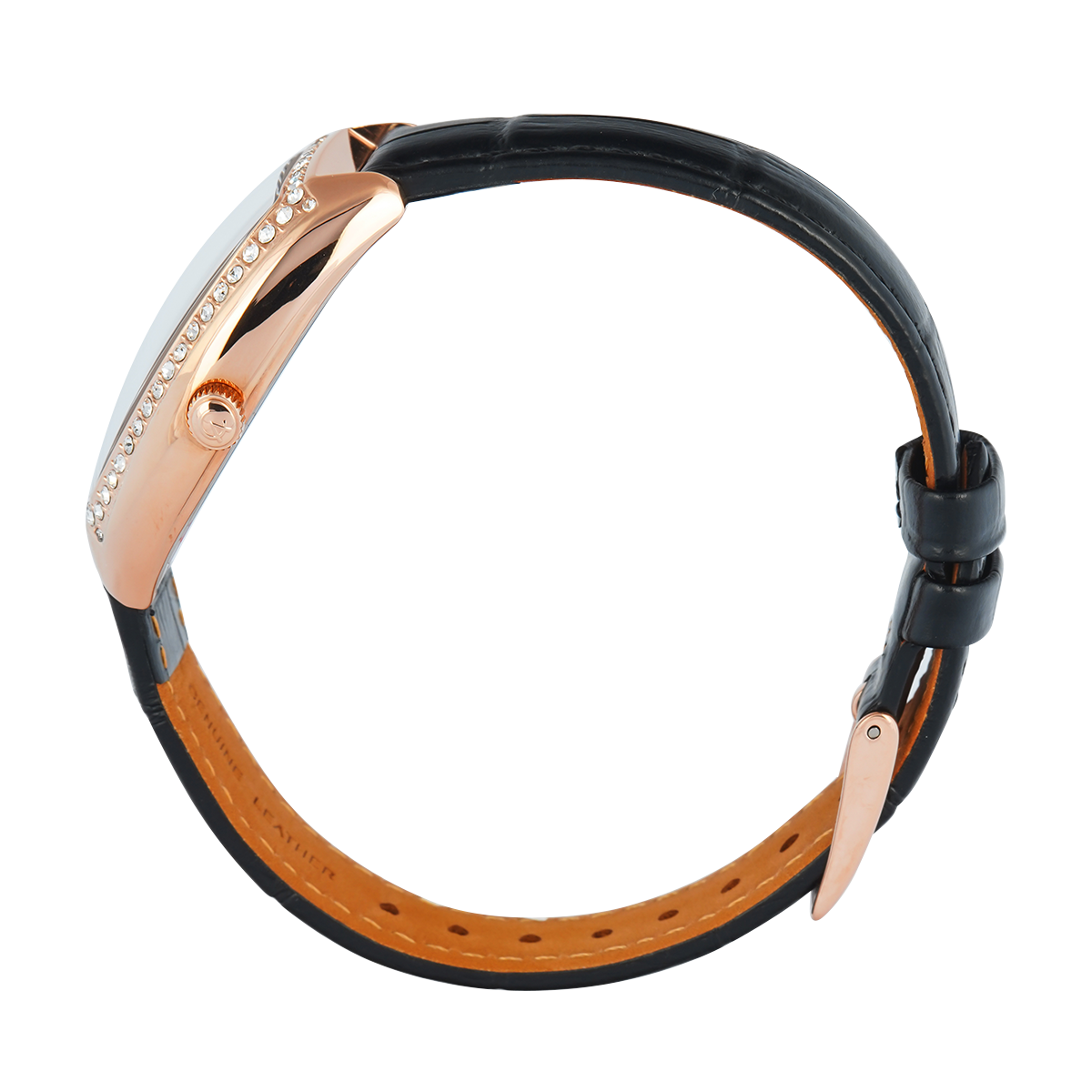 Alexandre Christie AC 2B86 BFLRGSLBA Women Silver White Dial Black Leather Strap
