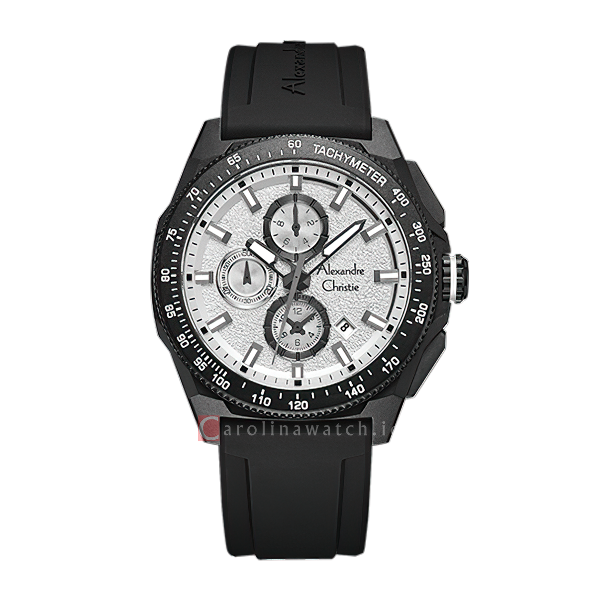 Jam Tangan Alexandre Christie AC 6688 MCRIPSL Men Silver White Dial Black Rubber Strap