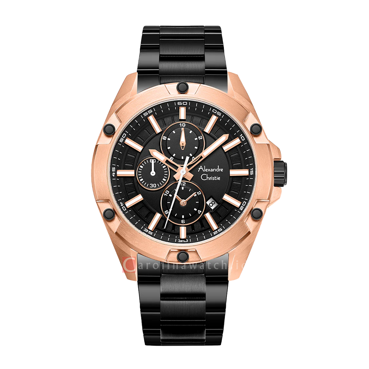 Jam Tangan Alexandre Christie AC 6690 MCFBRBA Men Black Dial Black Stainless Steel Strap