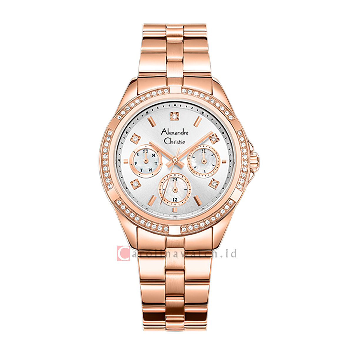 1x Jam Tangan Alexandre Christie Classic AC 2947 BFBRGSL2 Women White Dial Rose Gold Stainless Steel Strap