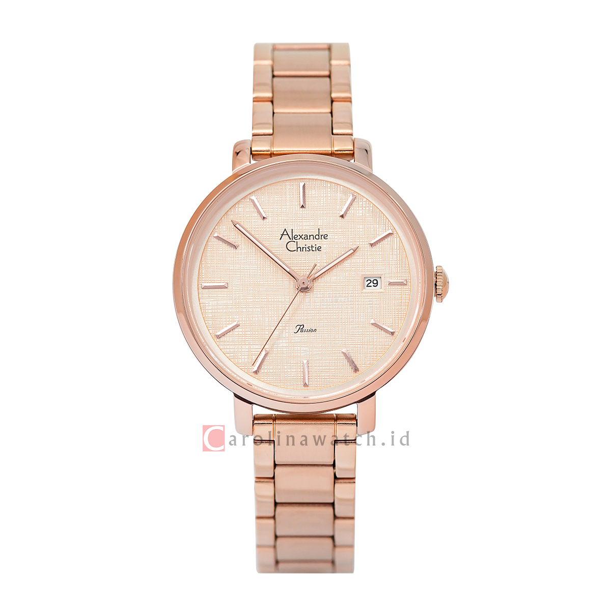 1x Jam Tangan Alexandre Christie Passion AC 2870 LDBRGLN1 Women Gold Dial Rose Gold Stainless Steel Strap