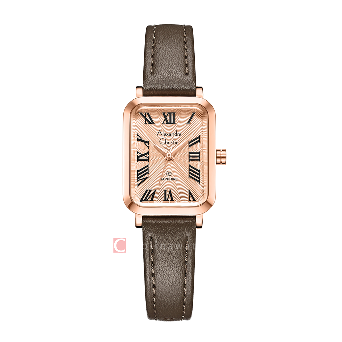 Alexandre Christie Passion AC 2B87 LHLRGLN Sapphire Women Rose Gold Dial Brown Leather Strap