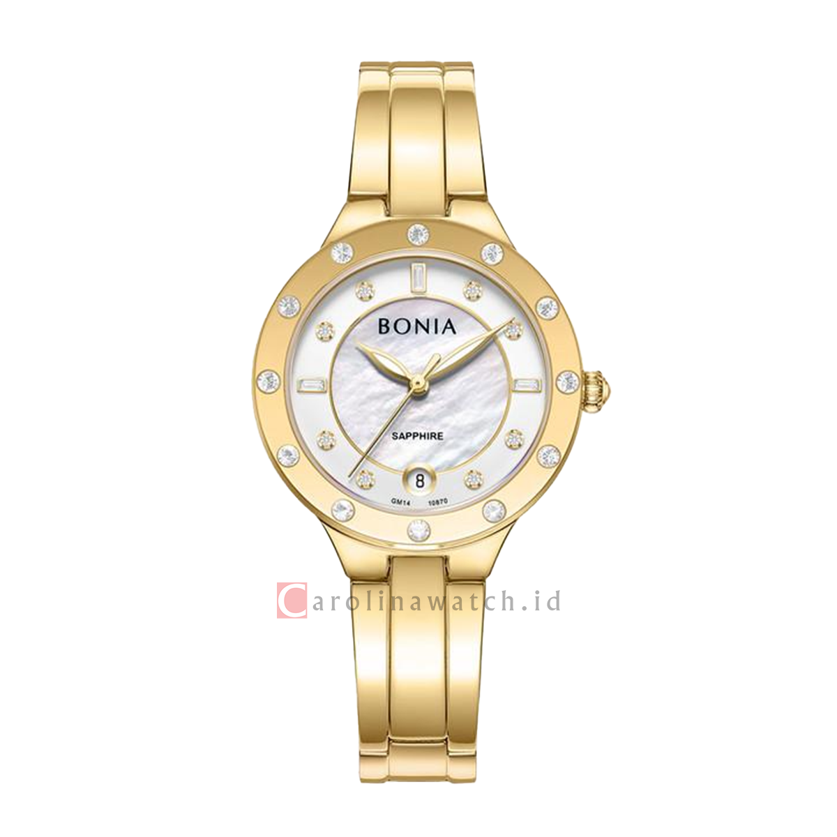 1x Jam Tangan BONIA Elegance B10870-2217S Women White Dial Gold Stainless Steel Strap