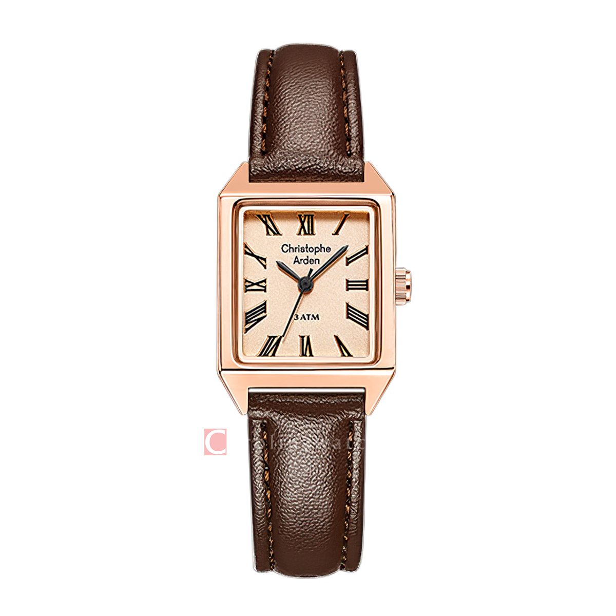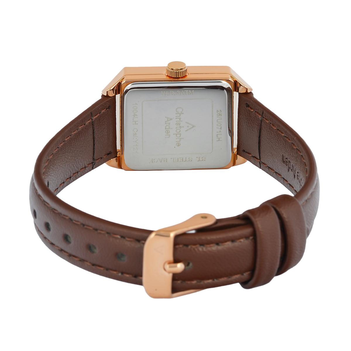 Jam Tangan Christophe Arden CA 1004 LHLRGPN2 Women Rose Gold Dial Brown Leather Strap