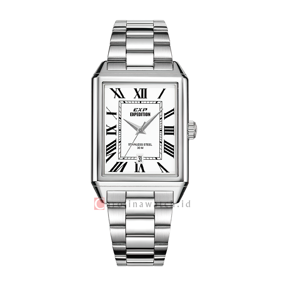 Jam Tangan Expedition EXP EX 6866 MDBSSSLRM Tank Men Silver White Dial Stainless Steel Strap