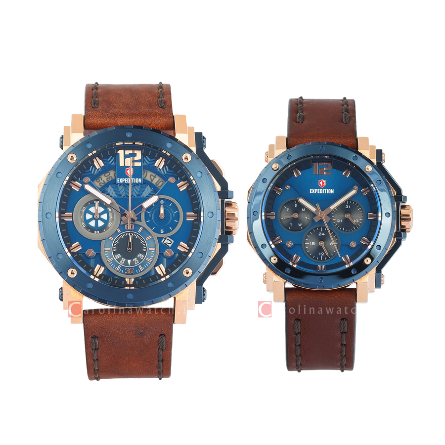 Jam Tangan Couple S Expedition E 6402 MCLURBU/BFLURBU Blue Dial Brown Leather Strap