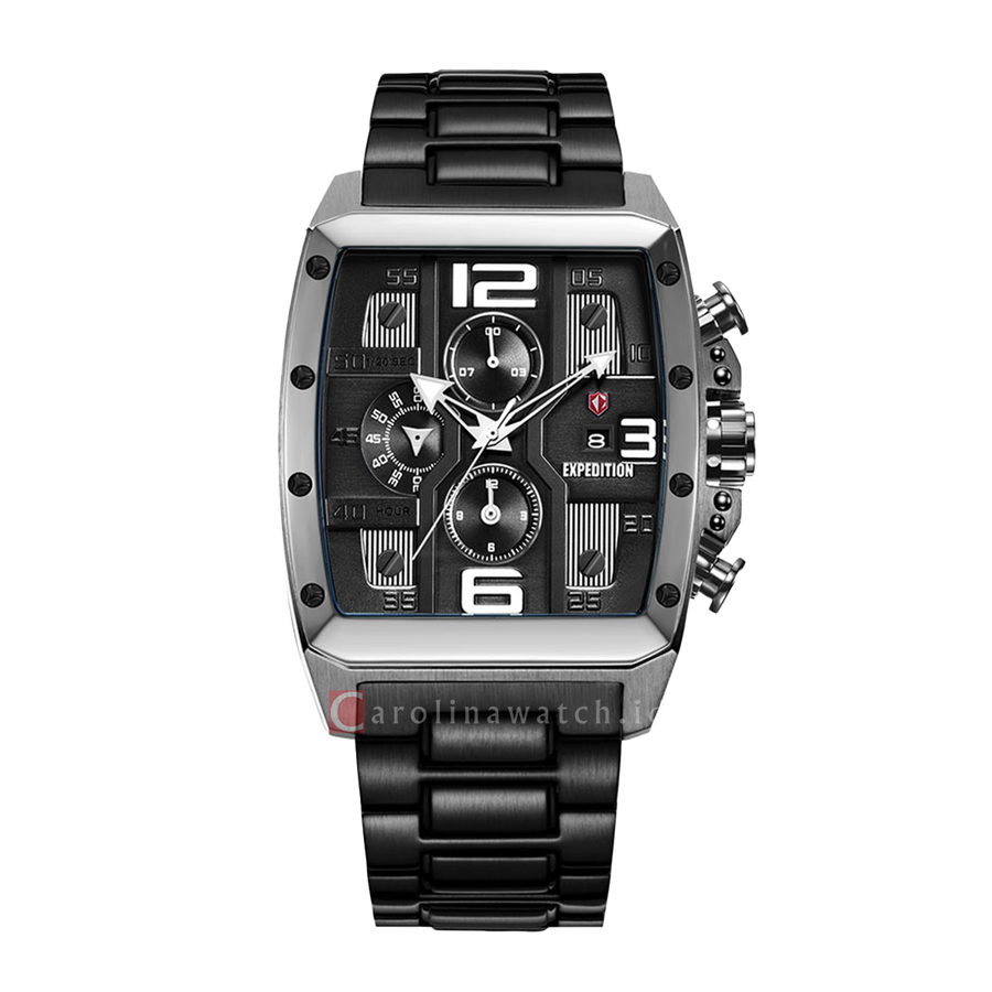 Jam Tangan Expedition Chronograph E 6636 MCBEPBA Men Black Dial Black Stainless Steel Strap