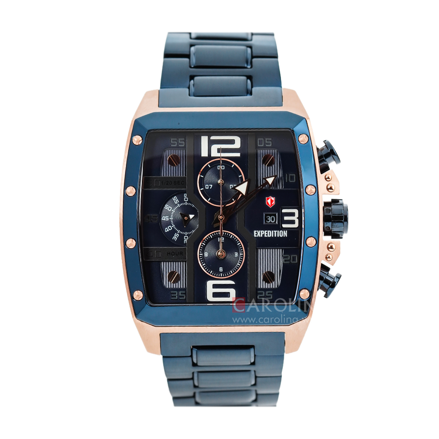 1x Jam Tangan Expedition Chronograph E 6636 MCBURBU Men Blue Dial Blue Stainless Steel Strap