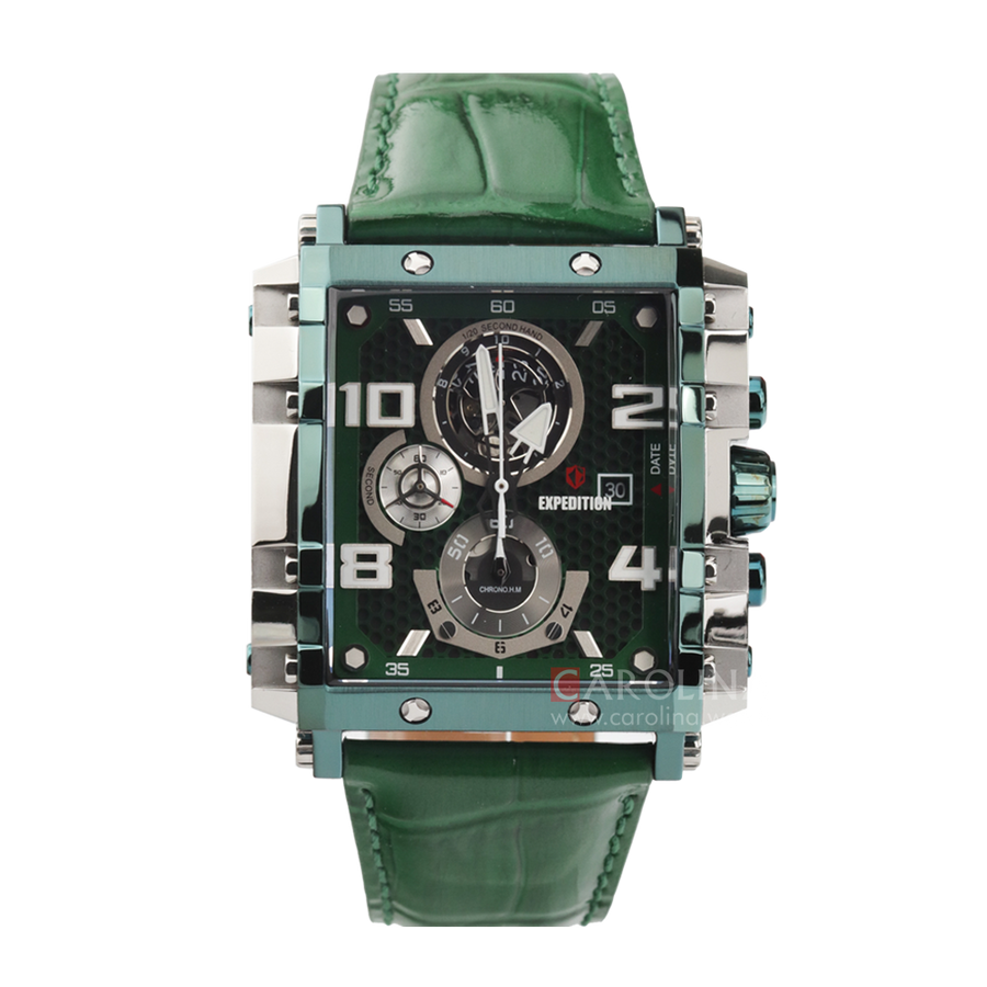 Jam Tangan Expedition Chronograph E 6757 MCLTZGN Men Green Dial Green Leather Strap