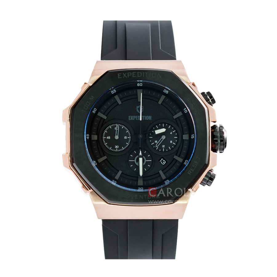 Jam Tangan Expedition Chronograph E 6816 MCRBRBASL Black Dial Black Rubber Strap
