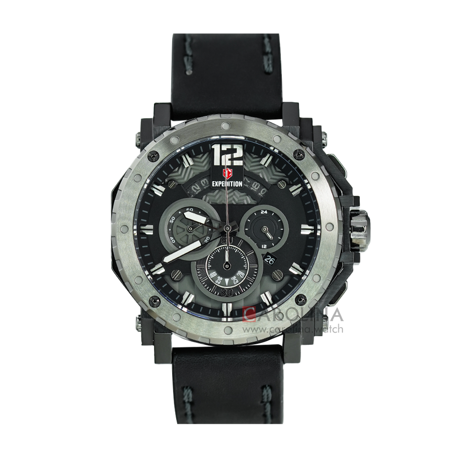 S Expedition Chronograph E 6402 MCLEPBA Men Black Dial Black Leather Strap